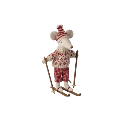 Ratón de invierno con esquí, mamá Rojo
